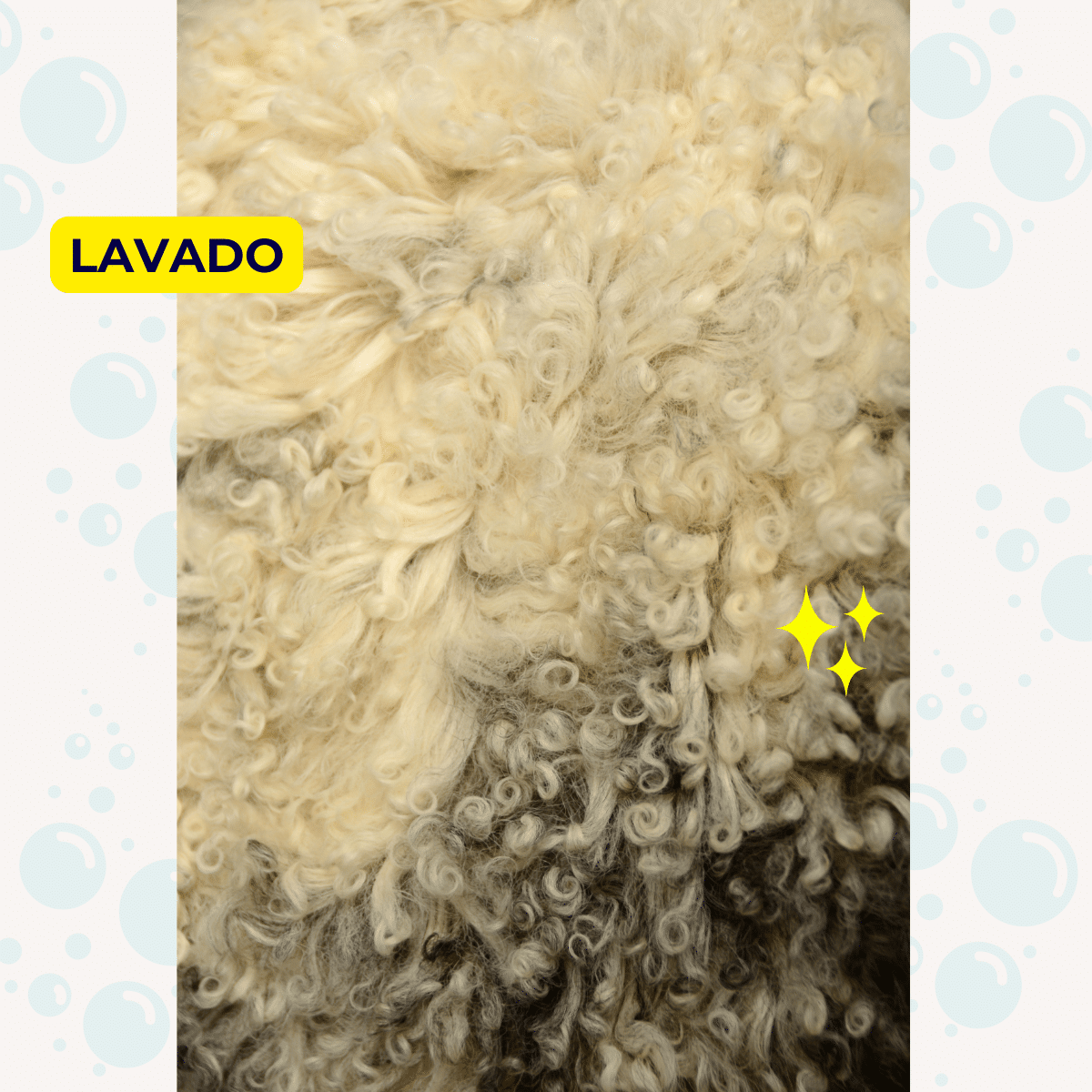Servicio a domicilio gratuito. Limpieza de una alfombra de piel de cordero.