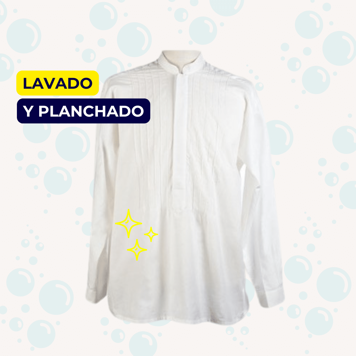 Predesmanchado, lavado, secado y planchado de blusa de fallero adulto.