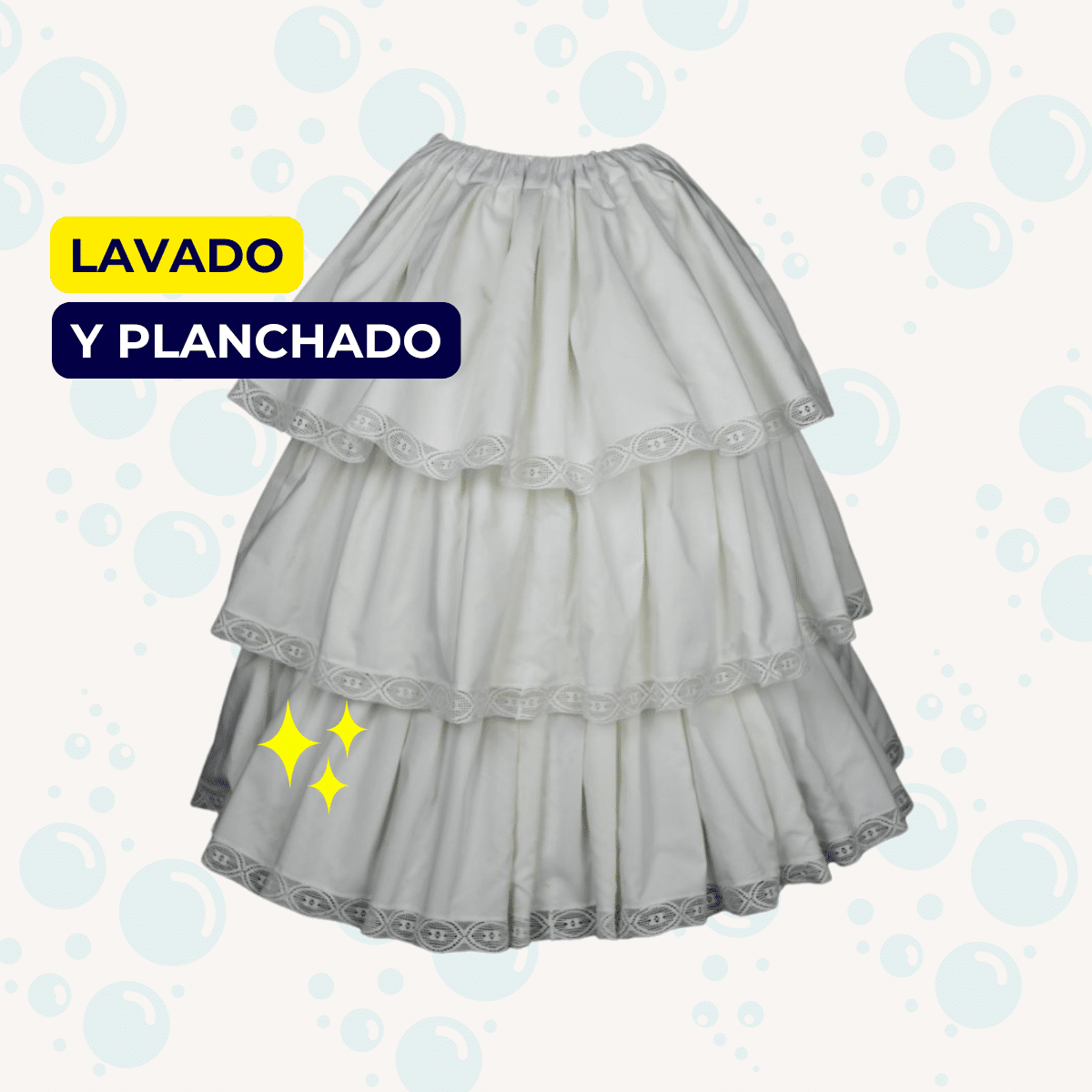 Predesmanchado, lavado, secado y planchado de un cancan de fallera.