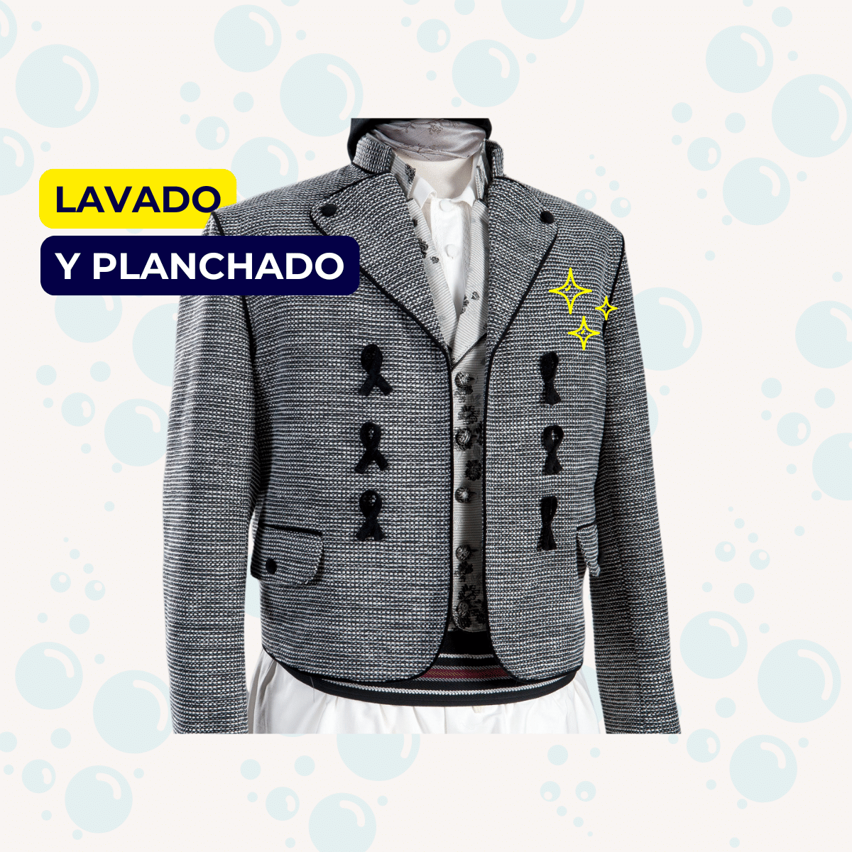 Predesmanchado, lavado, secado y planchado de una chaqueta de fallero adulto.