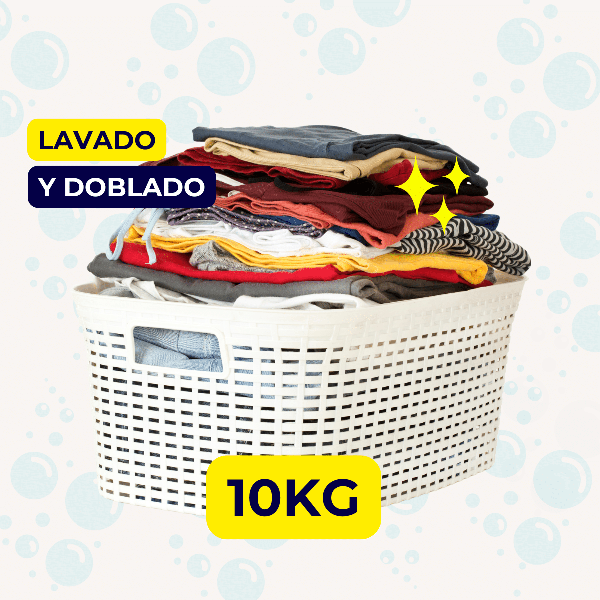 Servicio a domicilio gratuito. Separación de colores, lavado, secado y doblado de una colada de hasta 10 kgs de ropa.