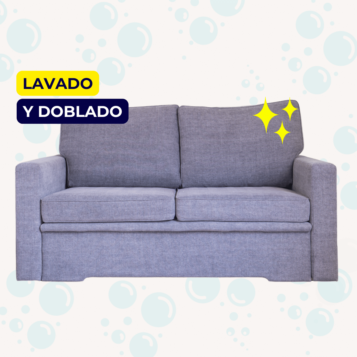 Servicio a domicilio gratuito. Predesmanchado, lavado, secado y doblado de una funda de sofá desmontable de 2 plazas.