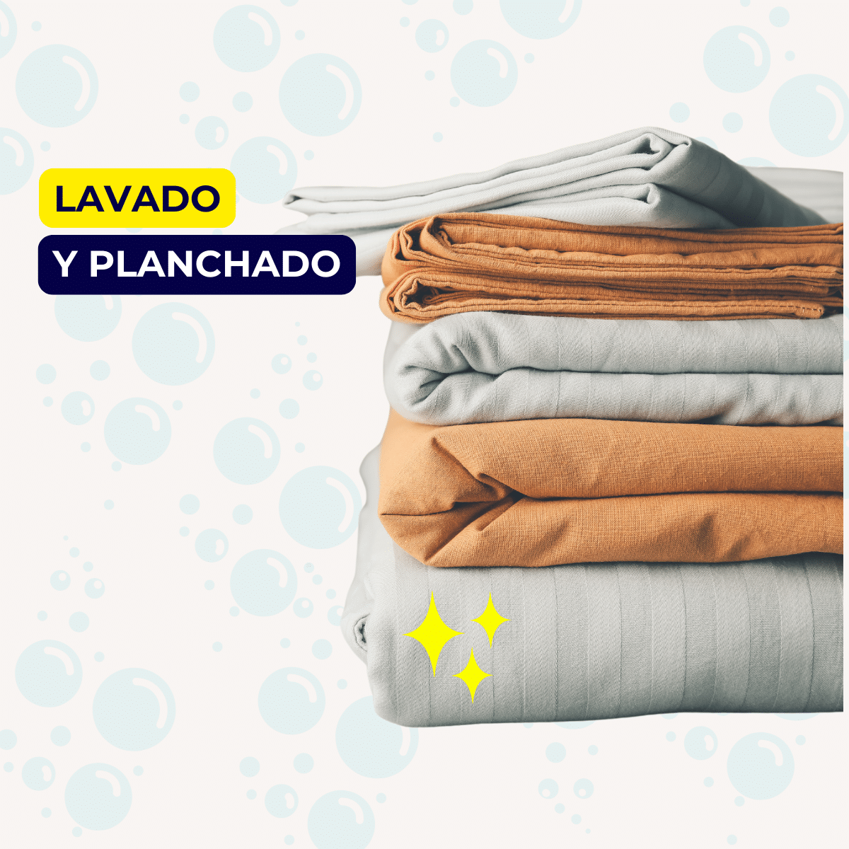 Servicio a domicilio gratuito. Predesmanchado, lavado, secado y doblado de un juego de sabanas de matrimonio.