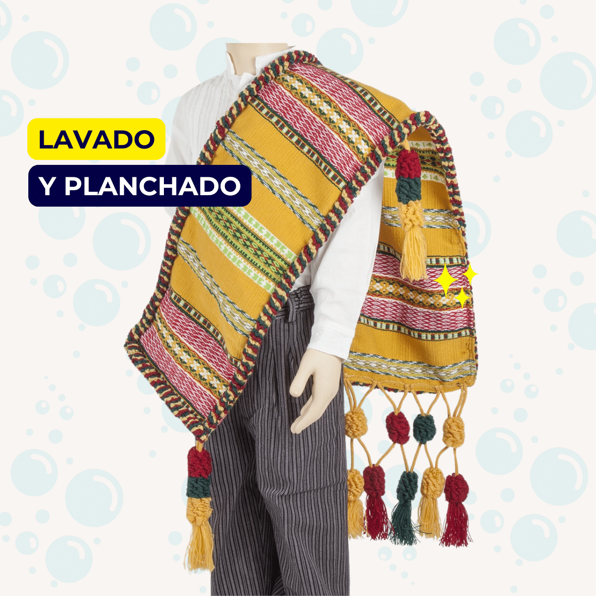 Predesmanchado, lavado, secado y planchado de una manta morellana.