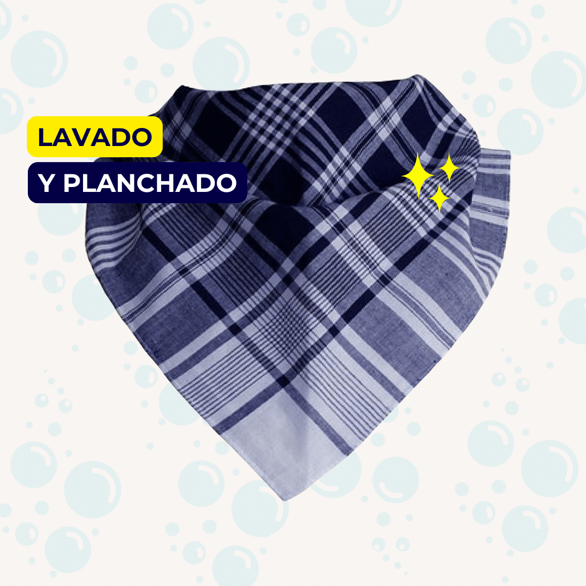 Predesmanchado, lavado, secado y planchado de un pañuelo fallero.