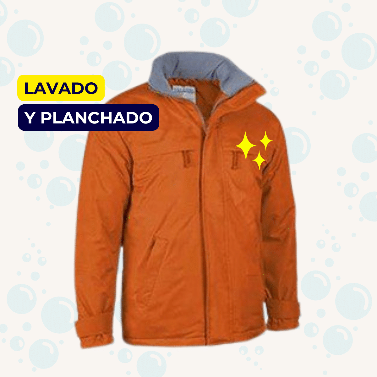 Predesmanchado, lavado, secado y planchado de una parka fallera.