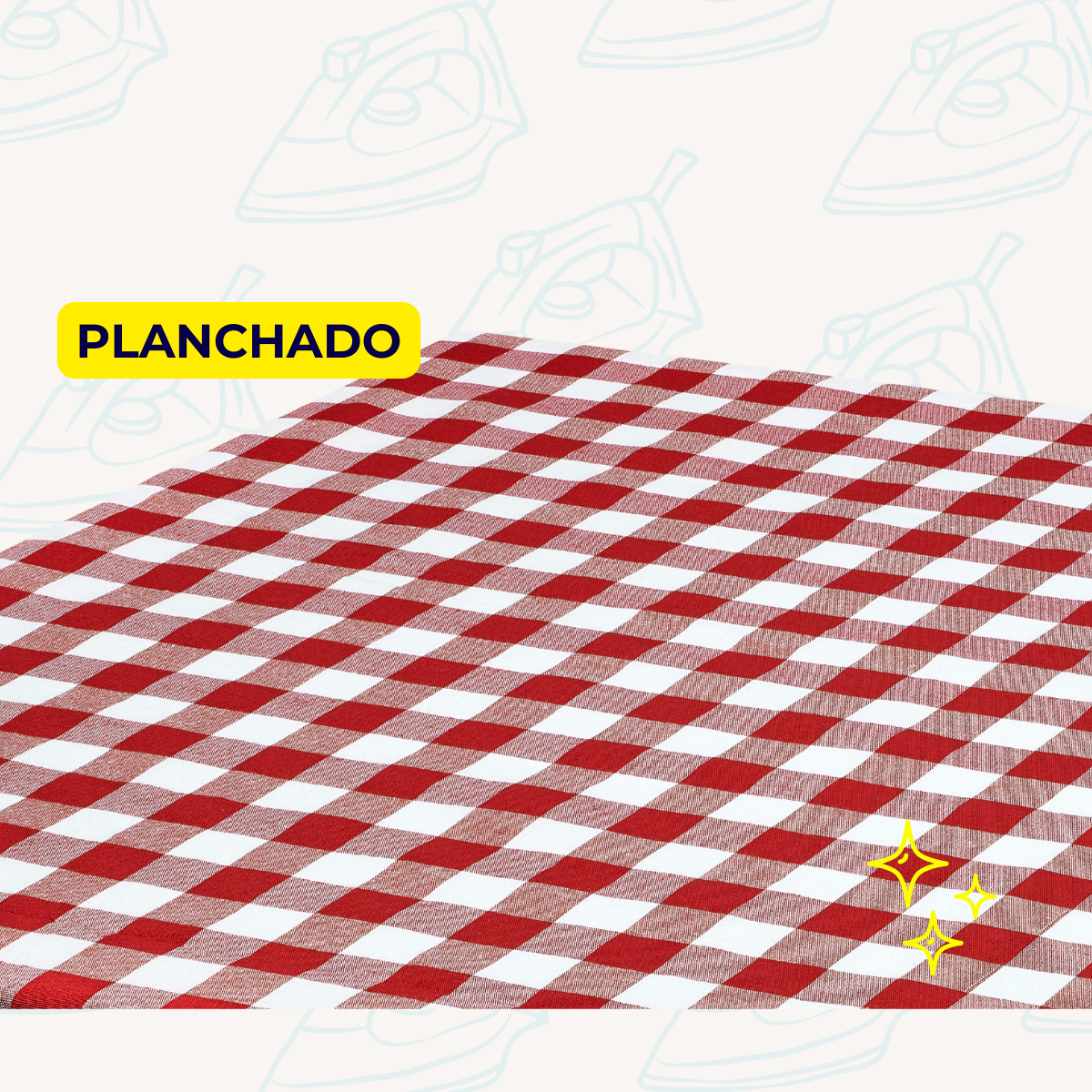Servicio a domicilio gratuito. Planchado de un mantel grande.