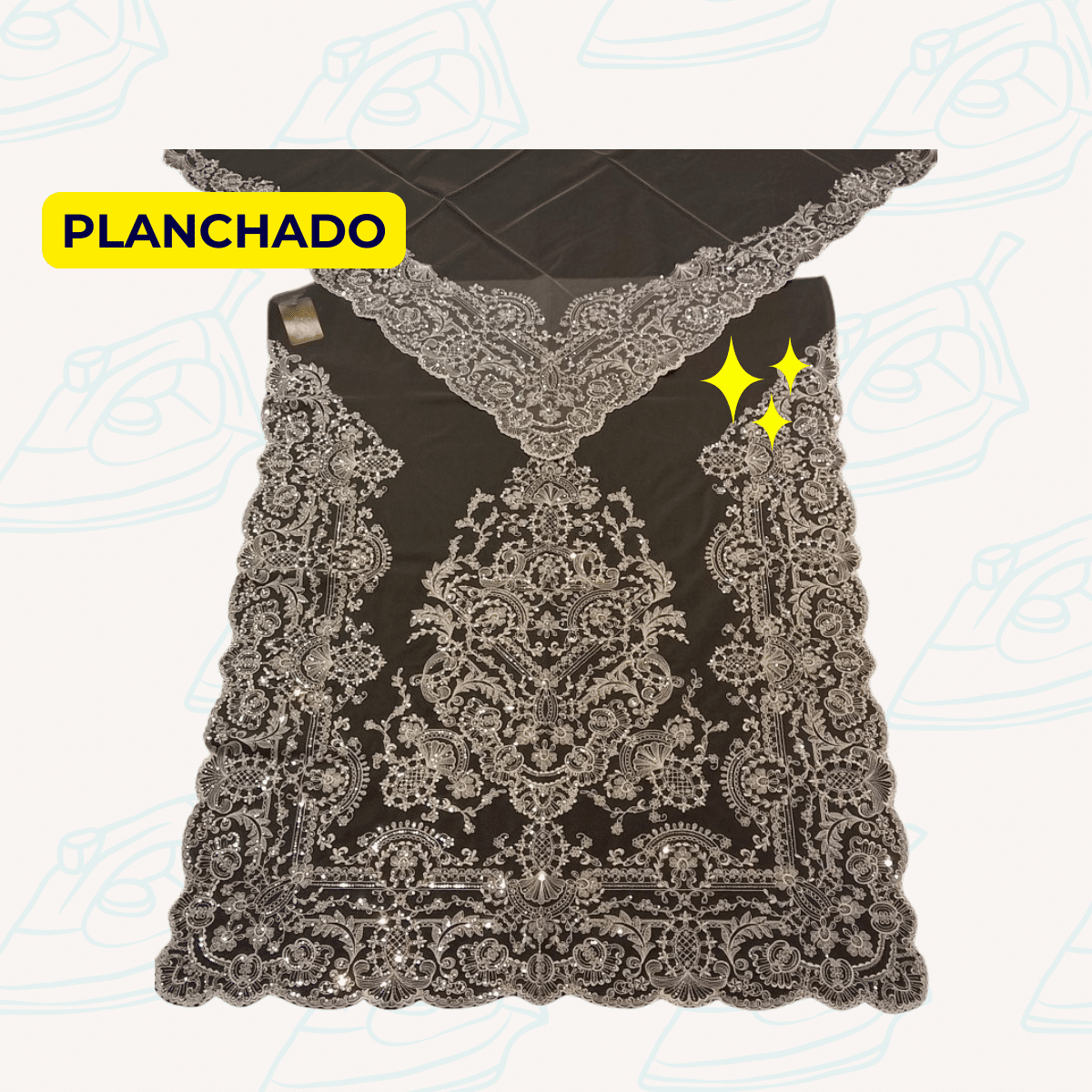 Servicio de tintorería para PLANCHADO JUEGO DE MANTELETA Y DELANTAL DE FALLERA