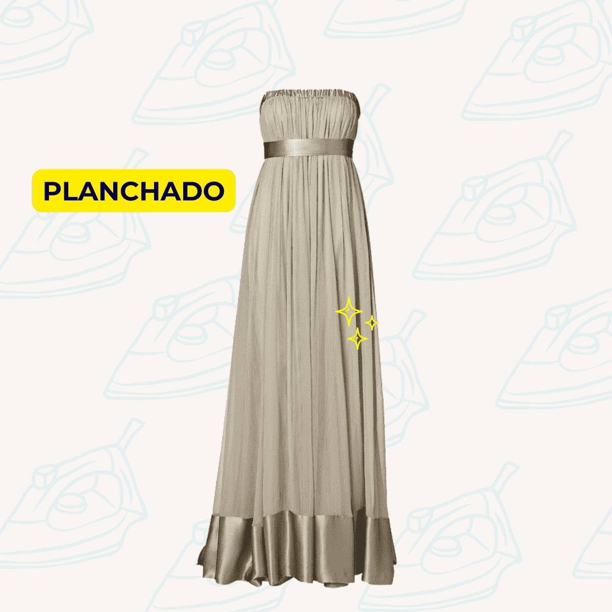 Servicio a domicilio gratuito. Planchado de un vestido largo.