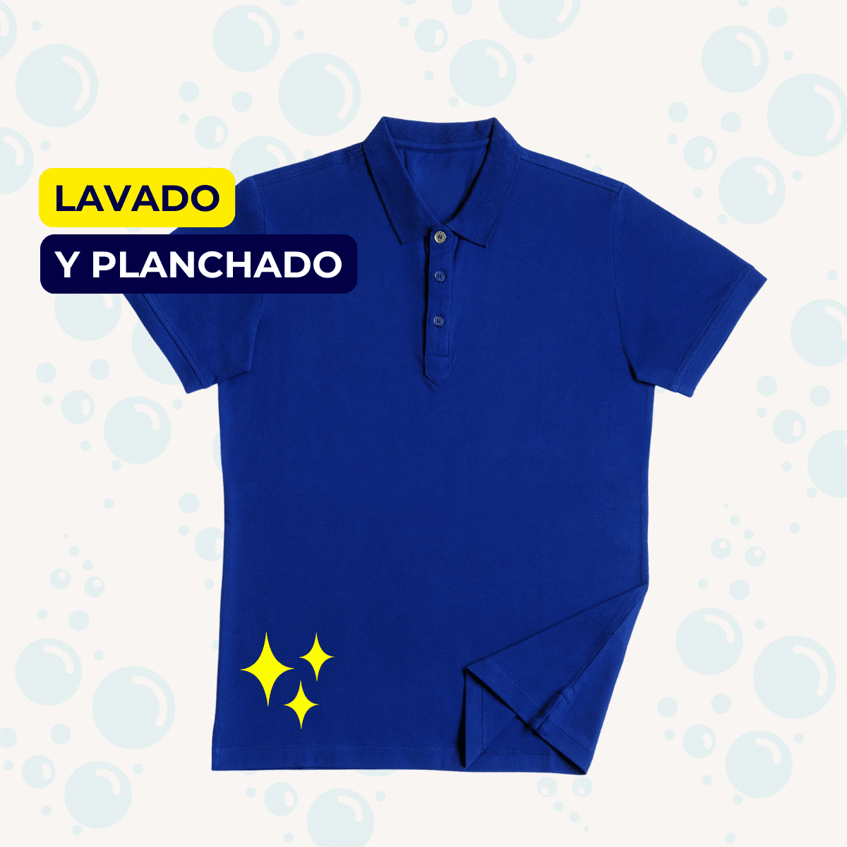 Servicio a domicilio gratuito. Predesmanchado, lavado, secado y planchado de un polo.