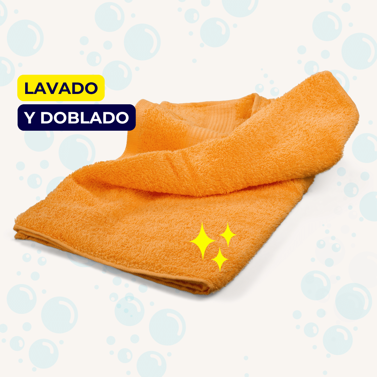 Servicio a domicilio gratuito. Predesmanchado, lavado, secado y doblado de una toalla.